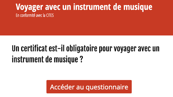 Si votre instrument contient des espèces ou essences protégées par la Convention sur le commerce international des espèces de faune et de flore sauvages menacées d’extinction (CITES), vous devrez préparer minutieusement votre voyage. L’objectif du guide réalisé par FIM et PEARLE est de fournir aux musiciens, ensembles musicaux, groupes et orchestres des informations pratiques sur la réglementation en vigueur et l’obtention des certificats CITES tels que le certificat pour instrument de musique (CIM) avant leur départ pour une tournée ou d’autres motifs professionnels.
